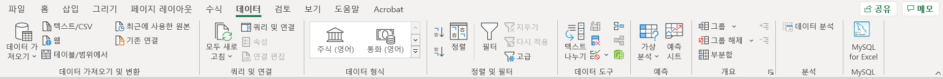 설치 후에는 엑셀-데이터에 들어갔을 때