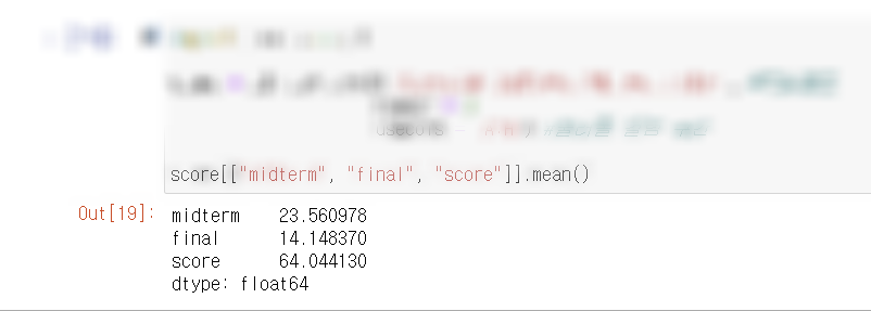 score[["midterm", "final", "score"]].mean() #각 컬럼의 평균값 출력