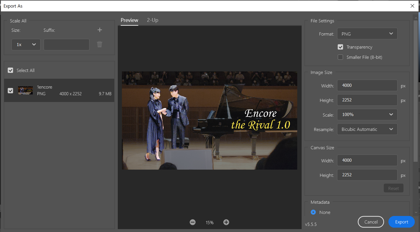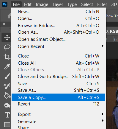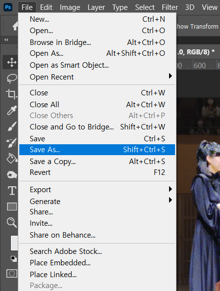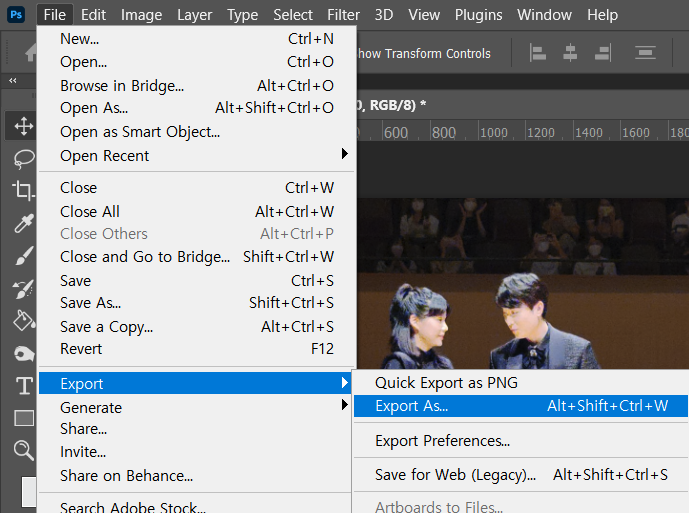 먼저 첫 번째 방법은 [내보내기][Export As]를 사용하는 것이다!