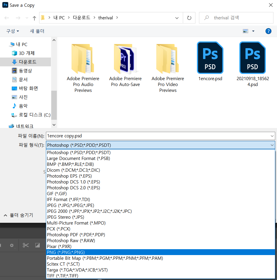 사본 저장에 들어가게 되면 이렇게 원래 저장하던 파일 형식들이 모두 뜬다