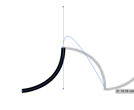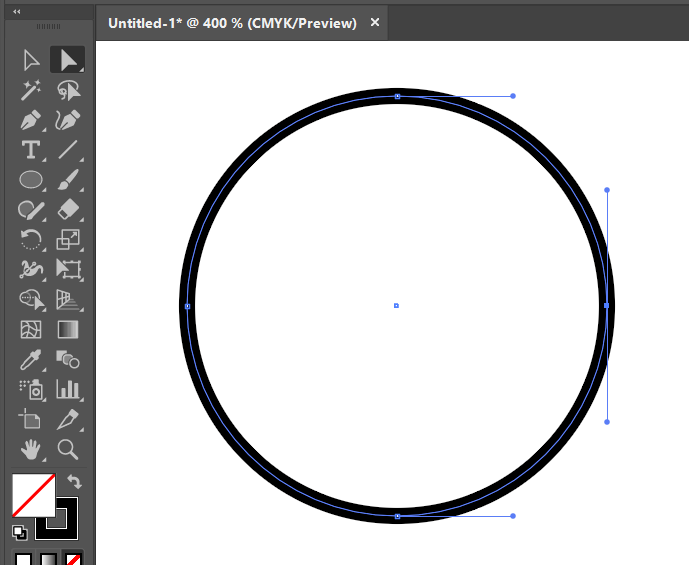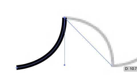 그 다음 작은 원의 앵커 포인트들을 찍어줘야 하는데 핸들이 지름을 넘지 않아야 하니까 줄여준다.