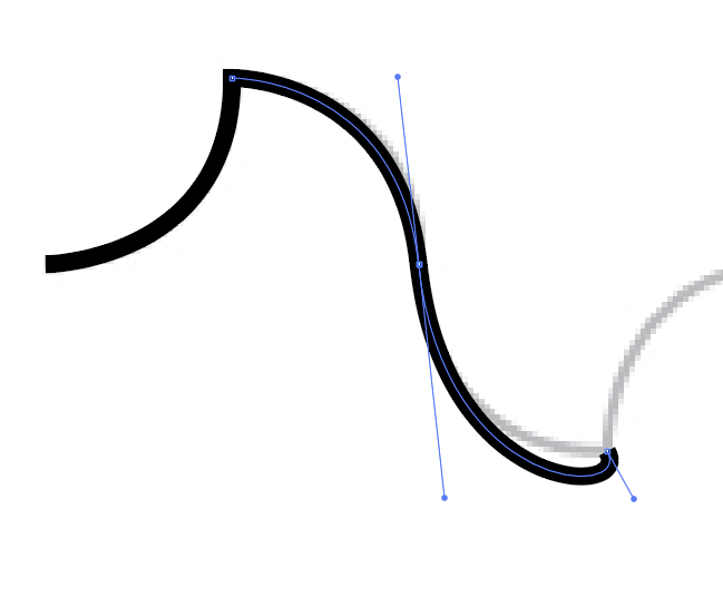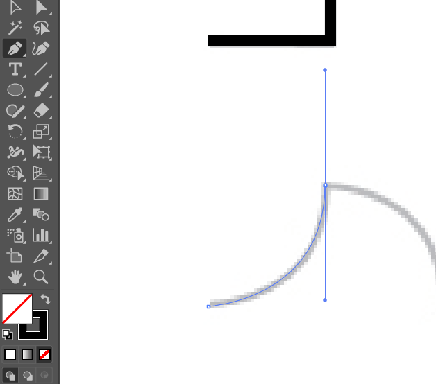 도형을 만들고 직접 선택 툴로 드래그를 해보면 앵커 포인트마다 핸들이 보인다.