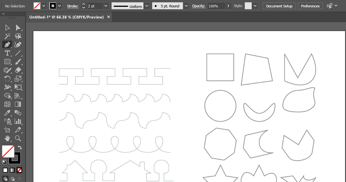 열린 패스를 만들기 위해서는 마지막에 Selection tool을 눌러주거나 esc키를 누르거나 Ctrl을 누른채로 여백을 눌러주면 된다.