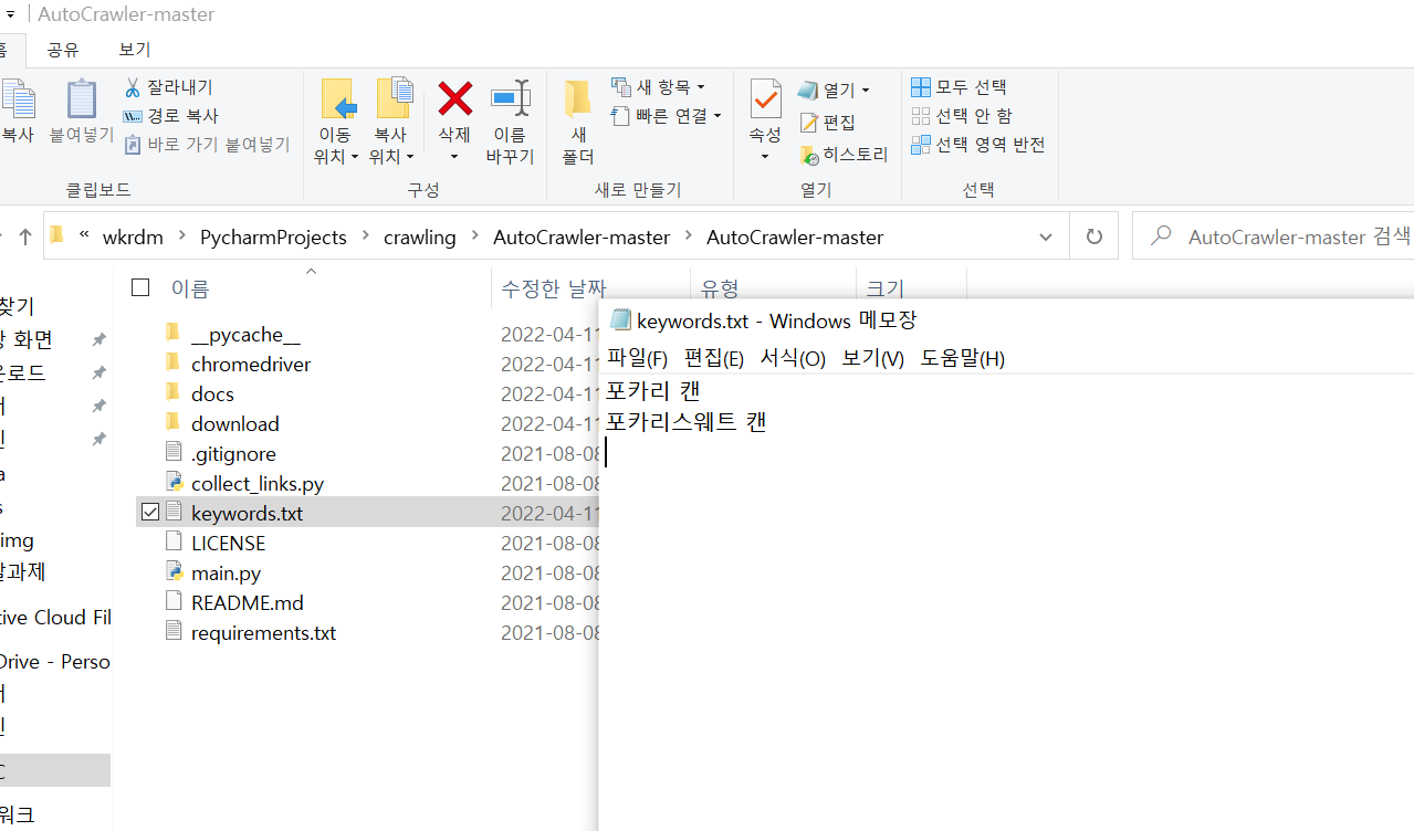 깃 폴더 안에 있는 키워드 파일을 원하는 검색어로 바꿔준다