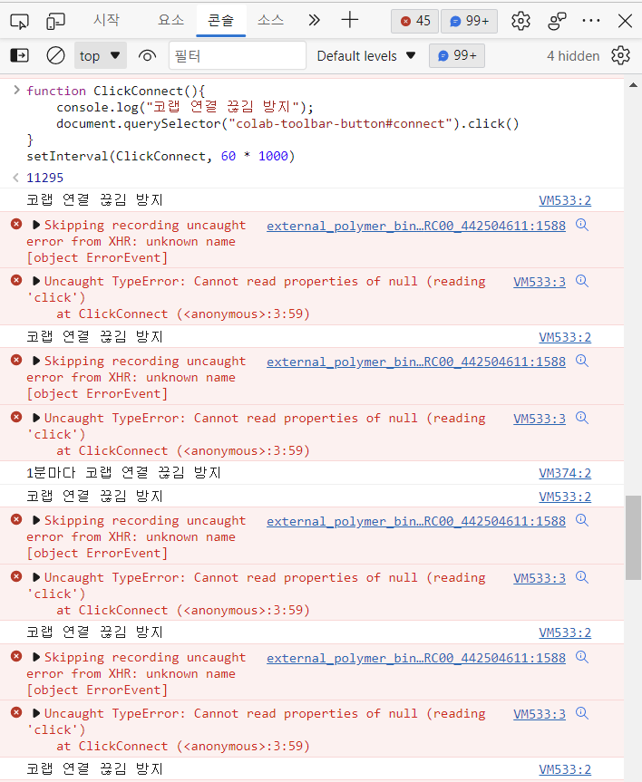 오래 돌려야 하므로 자바스크립트로 1분에 한번씩 이벤트 발생시켜주었다