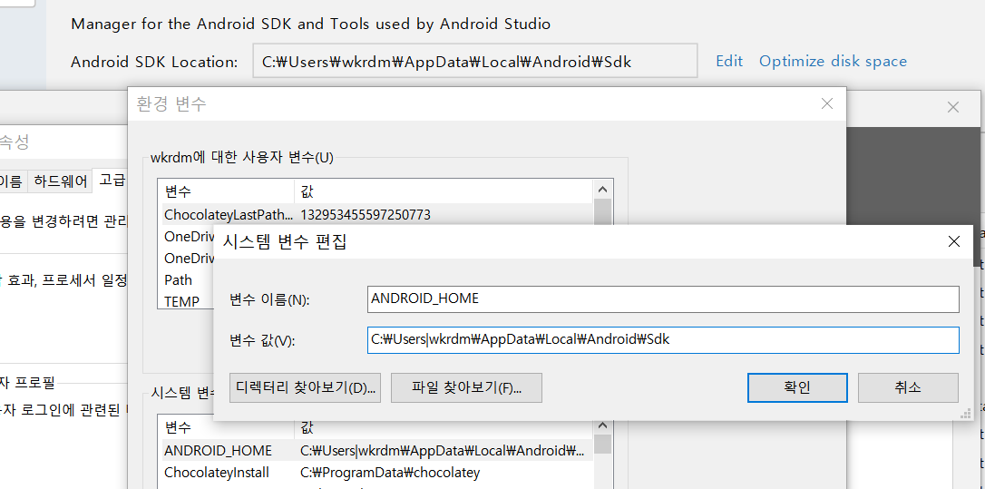 ANDROID_HOME을 sdk 주소로 새로 만들었다