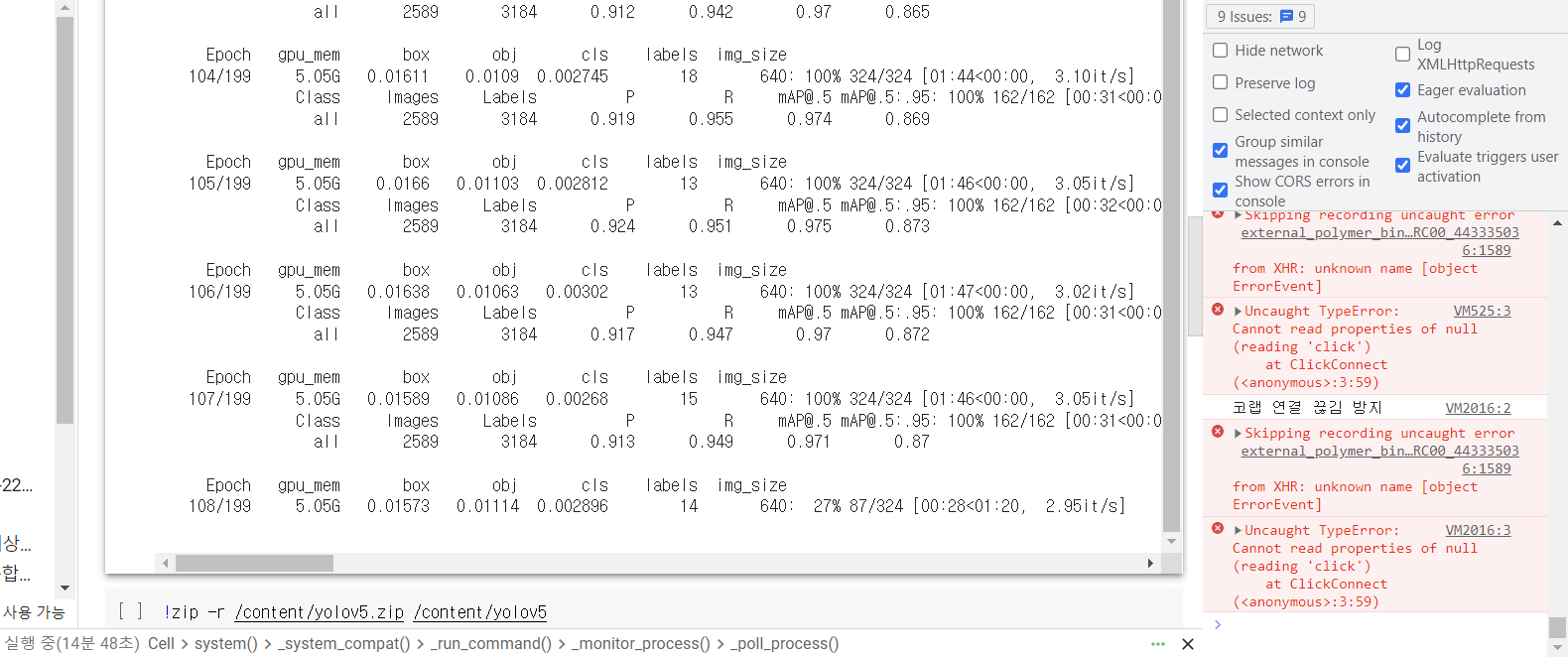 weights를 저번에 하다 말았던 파일 경로로 바꿔서 돌리면 이어서 돌아간다!