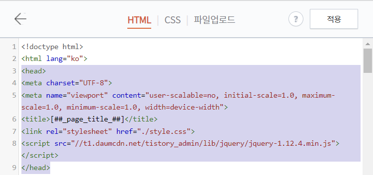여기서 <head></head> 태그 사이에 복사한 걸 붙여넣으면 끝!!