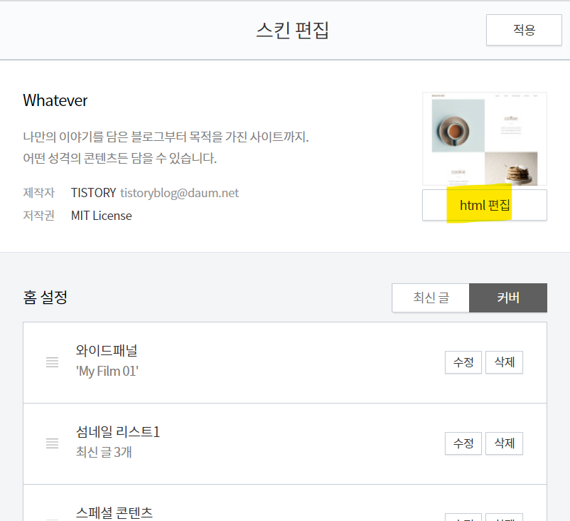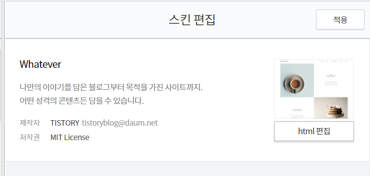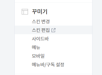블로그 편집에 들어가서 스킨 편집을 눌러준다