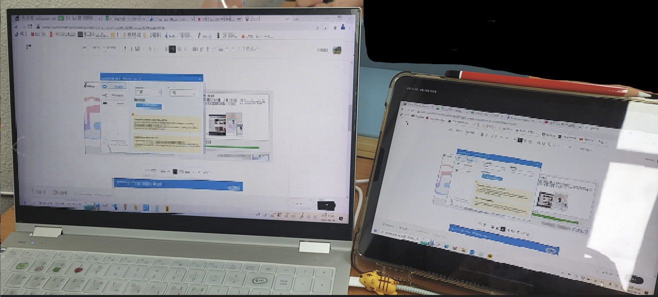 미러 모드를 해제하고 노트북 설정에서 확장모드로 해주면 넓게 쓸 수 있다!