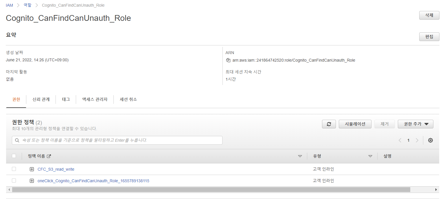 여기서 보면 Auth와 Unauth 역할이 두개 생성되는 것을 알 수 있다. 다음으로 넘어가자