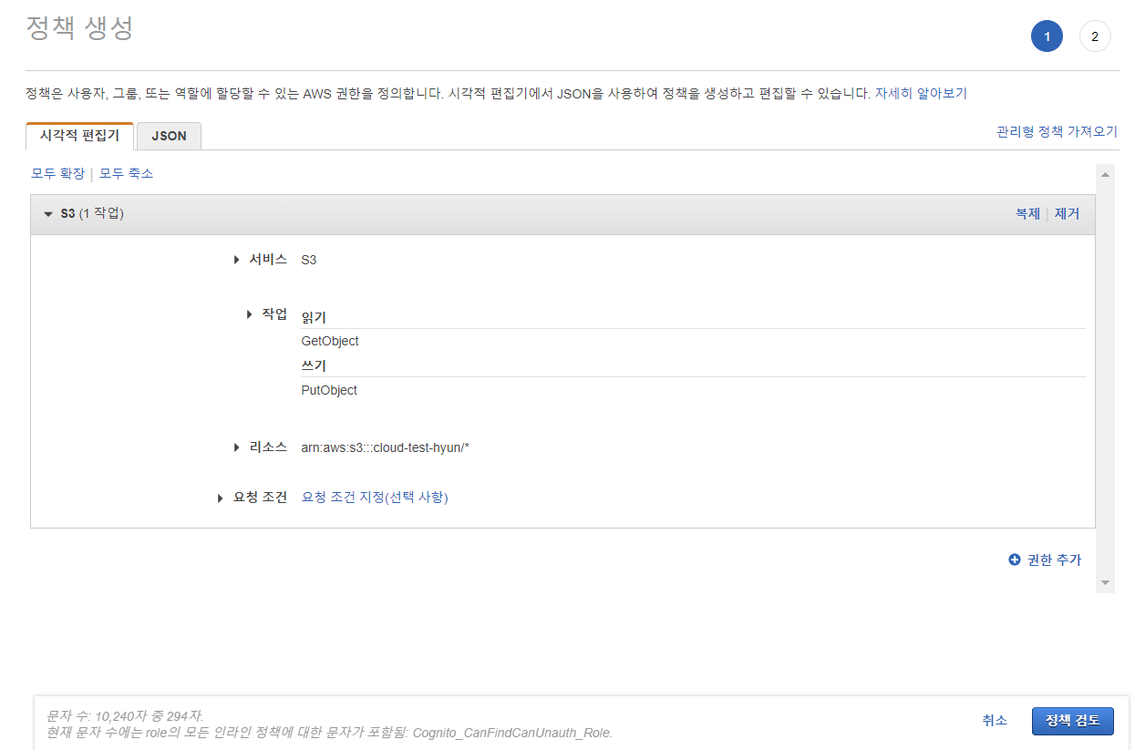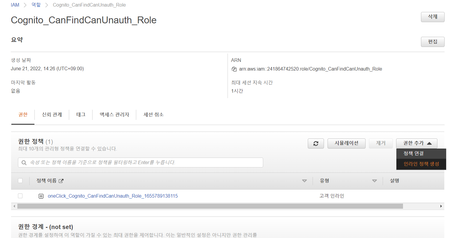 Unauth_Role로 들어가서 인라인 정책을 생성해줄 것이다