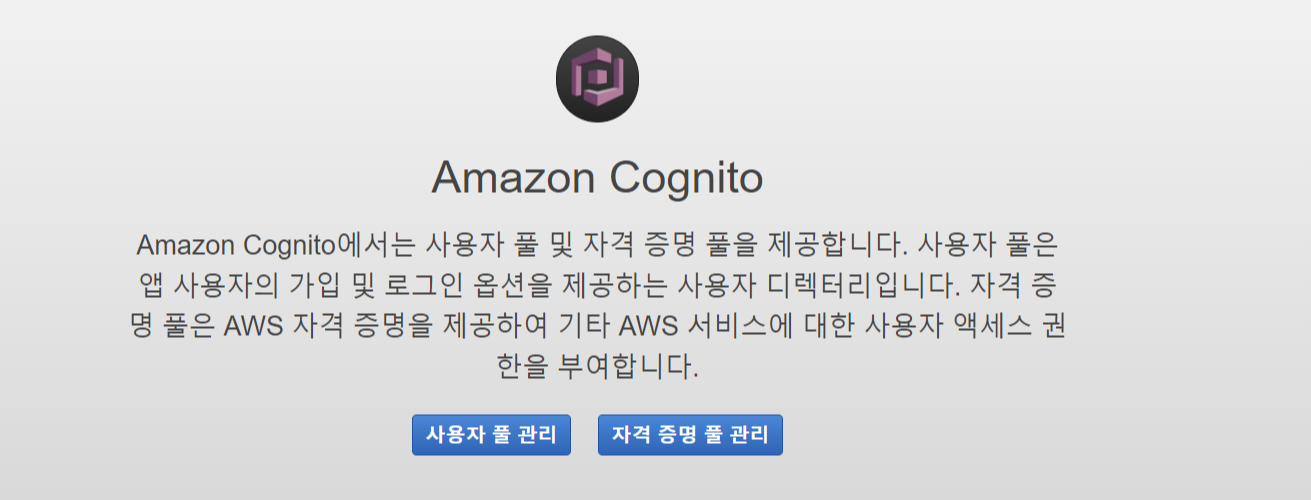 Amazon Cognito에 들어가면 이런 화면이 나오는데 여기서 [자격 증명 풀 관리]를 눌러준다