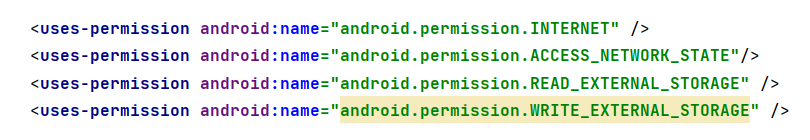 <uses-permission android:name="android.permission.WRITE_EXTERNAL_STORAGE" />