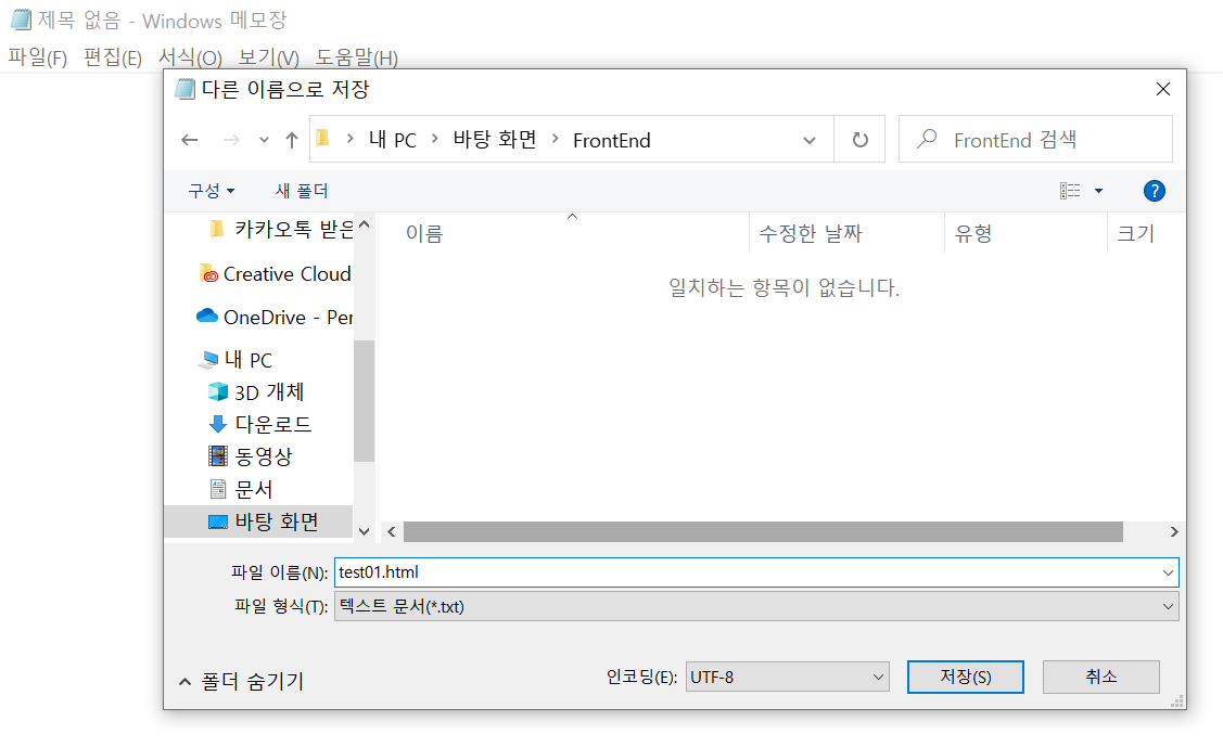 먼저 원하는 텍스트 편집기를 열고 확장자를 html로 해서 저장을 해준다.