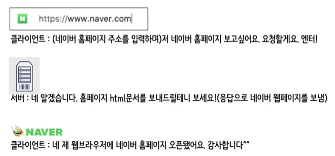 클라이언트(사용자)가 요청을 하면 서버는 그에 대한 응답으로 정보를 제공한다