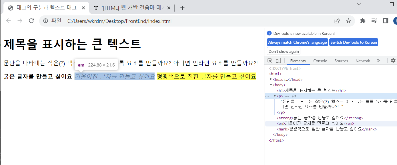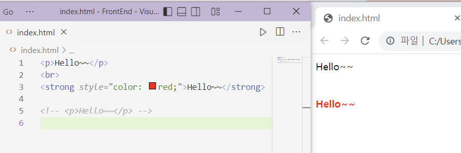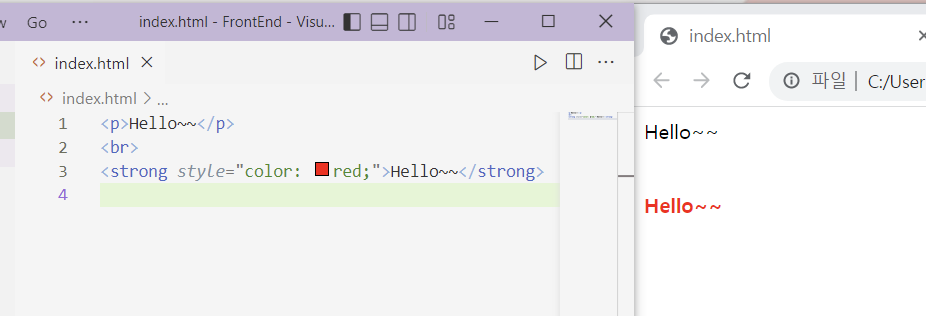 strong 태그에 속성으로 스타일값을 넣어줬다.