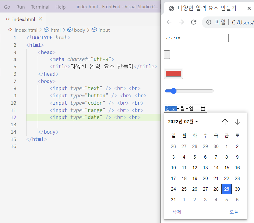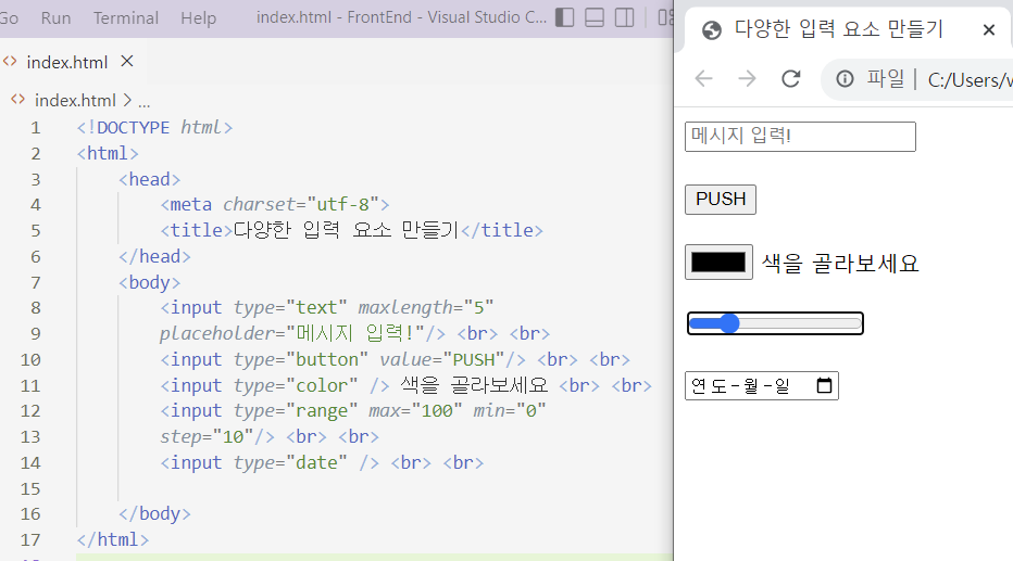 - 각종 사용자 인터페이스(버튼, 입력란, 드롭다운 메뉴 등)를 나타내는 태그