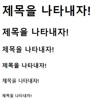 h태그는 제목(표제) 요소를 나타내는 태그이다.