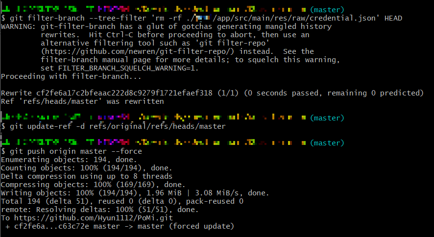 내 계정으로 만든 정보가 들어가 있어서 이 민감 데이터 파일을 삭제해야 한다.