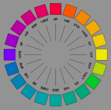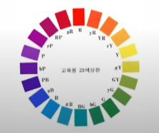 - 우리나라에서는 먼셀의 표준 20색상환을 따르고 있음
