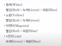 - LCD, LED 조명등에 활용되는 색의 혼합방식