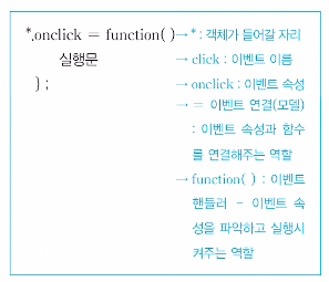 - 자바스크립트에서 사용자의 특정한 행동에 대해 어떤 처리를 해줄 것인가를 정의하는 것